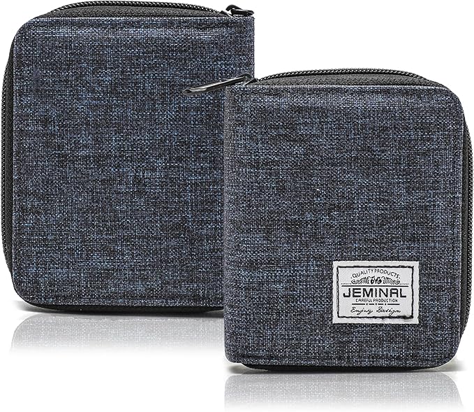 JEMINAL Zip Short Wallet for Men Women Travel Vertical Bifold Fabric Canvas Wallet with Card Case Women' Large Capacity Zip Wallet with Coin Purse Gifts for Men Him (Vertical-Blue)