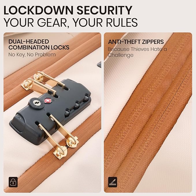 - Security Upgrade: The travel backpack with vacuum system offers peace of mind with a TSA double-headed combo lock that secures both laptop and main compartments—protecting valuables while ensuring quick security passage, preventing baggage detention from locks, and saving time. The anti-theft zippers effectively resist prying. Multiple security layers ensure your vacuum backpack travel keeps your business trip worry-free, letting you focus solely on your journey
