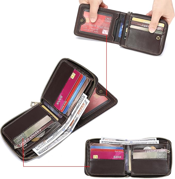 LUKZIJAES Genuine Leather Wallet for Men (#15-Coffee)