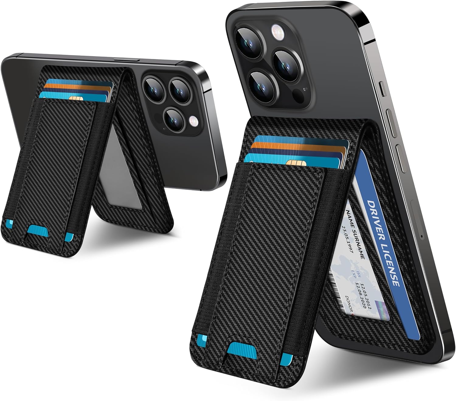 ExtreLife 2-in-1 Magsafe Wallet, Adjustable Stand and Open ID Window, Magnetic Wallet for iPhone 17/16/15/14 Pro Max/14 Pro/14/14 Plus/13/12 Series, 9 Cards, Black Carbon Fiber